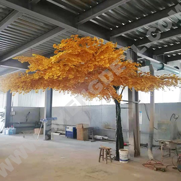 仿真銀杏樹樹桿是由內(nèi)部國(guó)際鋼結(jié)構(gòu)表面高仿真塑膠海棗皮合制而成,仿真度高樹皮紋理清晰且富有手感。樹葉采用ABS塑料或PU等高性能阻燃環(huán)保材料,耐腐蝕性能良好,且具有耐老化、耐高溫、防紫外線、抗風(fēng)抗雪壓等特點(diǎn)。