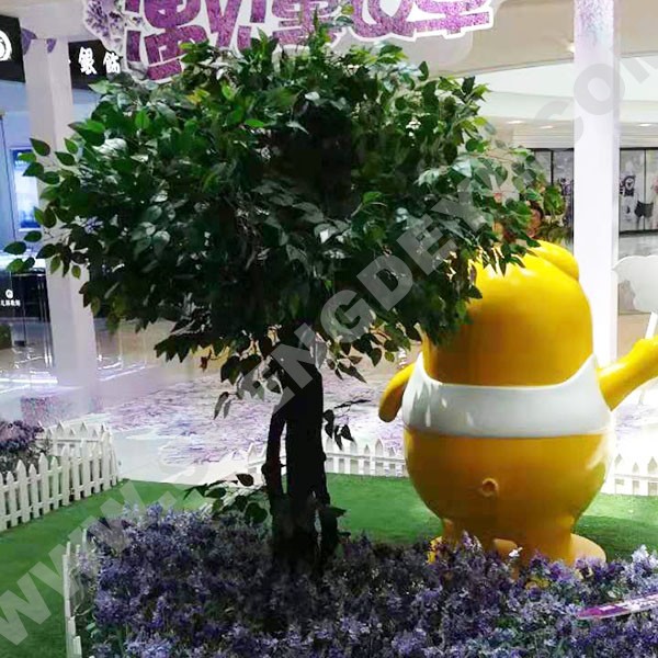 仿真榕樹采用的是玻璃鋼環(huán)保材料,無毒無害,自然逼真,表面紋理清晰,綠意盎然,不用養(yǎng)護,無需打理,不受環(huán)境影響,四季都能給你帶來一片綠色景象。既適合用室外也適合用于室內(nèi),室內(nèi)室外的制作在大小還有材質(zhì)上有一些區(qū)別,但用途都是一樣的,各有特色,它用來造景最突出的特點就是給人一種非常震撼的視覺感。